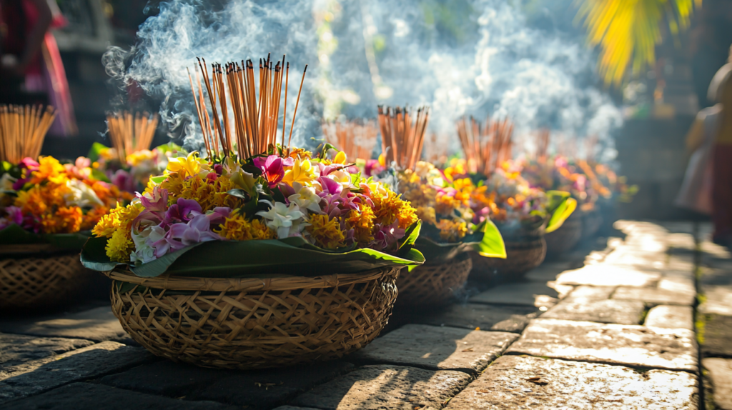 La variante Uwudan est particulièrement tenante : elle survient alors que la lune est en phase décroissante, renforçant l’idée que les forces obscures sont plus actives. Ce jour est donc consacré à la neutralisation des énergies négatives, via des offrandes appelées segehan et tipat dampulan, déposées aux carrefours, devant les maisons et dans les cours des temples.