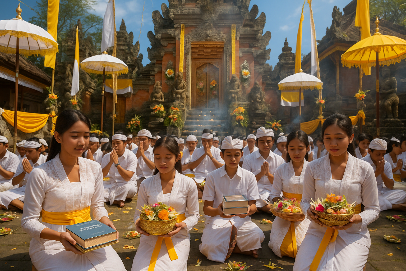 L’une des fêtes les plus importantes à Bali. Ce jour célèbre Sang Hyang Aji Saraswati, déesse du savoir et de la sagesse. Les Balinais rendent hommage aux livres, manuscrits sacrés (lontars) et à l’enseignement. Il est courant de voir les temples et bibliothèques fleuris d’offrandes.